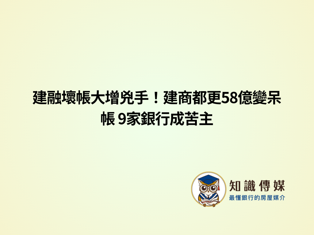 建融壞帳大增兇手!建商都更58億變呆帳 9家銀行成苦主