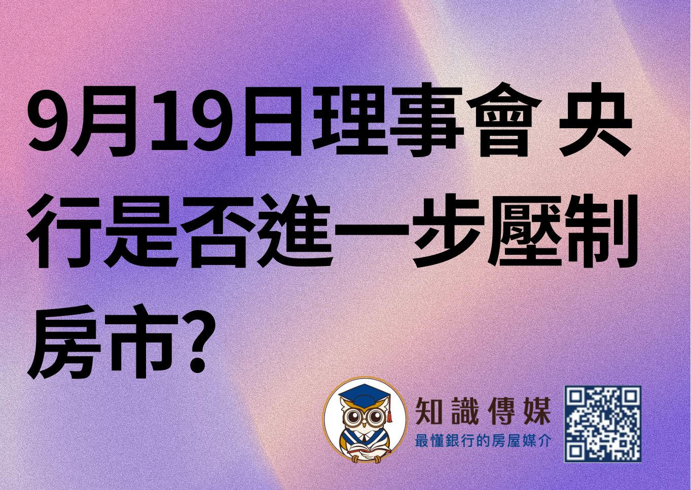 央行在8月已經針對房市加強管控,召集銀行會議,要求自主管理不動產貸款,並提出量化改善方案,但央行仍明確指出房市需要降溫,因此推測這次理監事會議的重點將是如何進一步限制不動產貸款,特別針對投機性購屋。