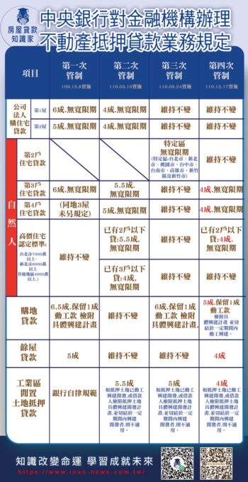 (二)購屋貸款:應向財團法人金融聯合徵信中心辦理歸戶查詢借款人有無以房屋(含基地)為抵押之擔保放款,且用途代號為「1」(購置不動產)者(以下稱房貸);其貸款條件限制如下: