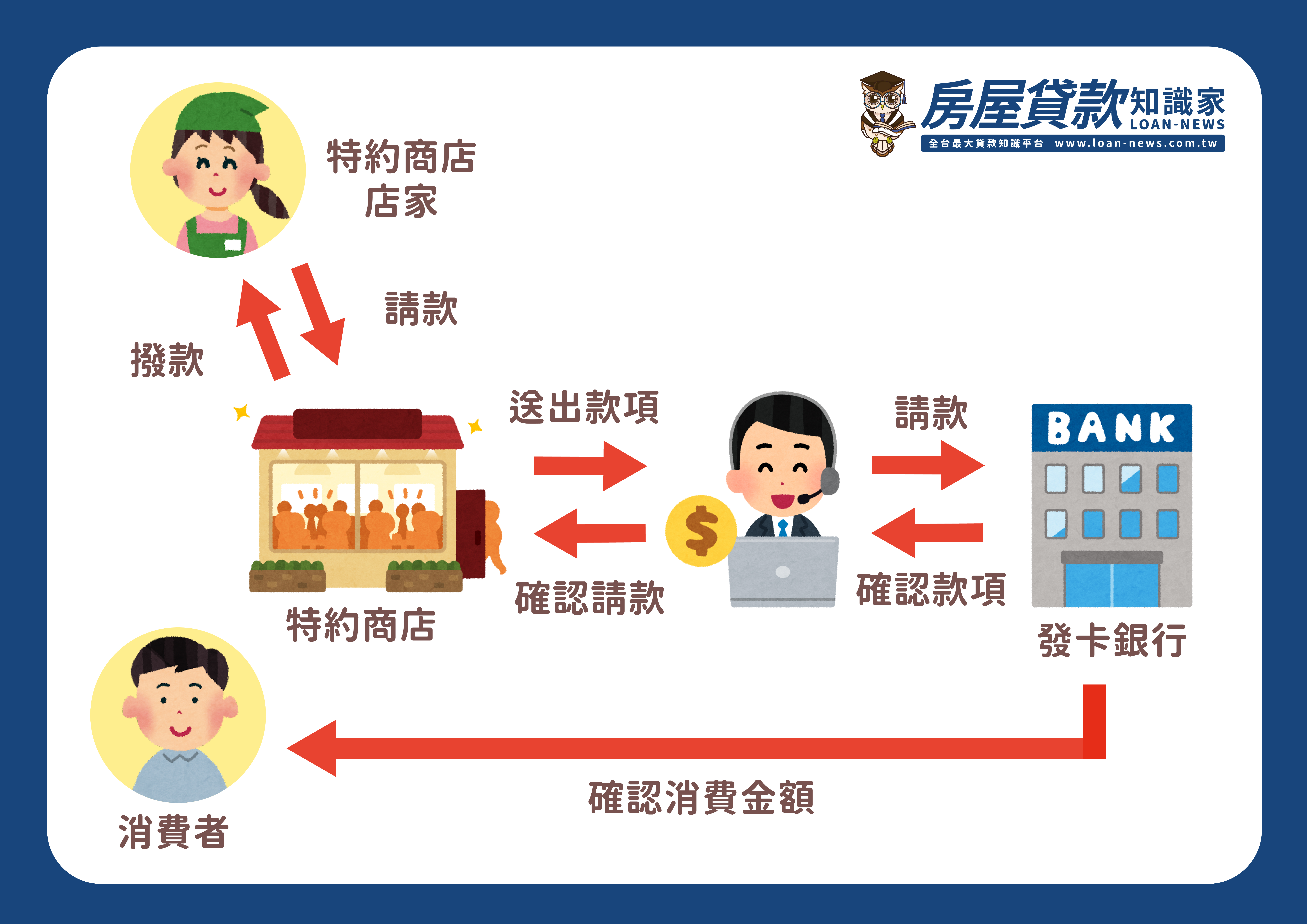信用卡是由銀行發行的卡片,持卡人進行消費時,預先向銀行借入資金來支付費用,也就是說人們運用銀行對自身的信任,而產生的先購買、後還款的付款工具。在交易當下,是銀行會先幫我們付款,並在之後收取款項。