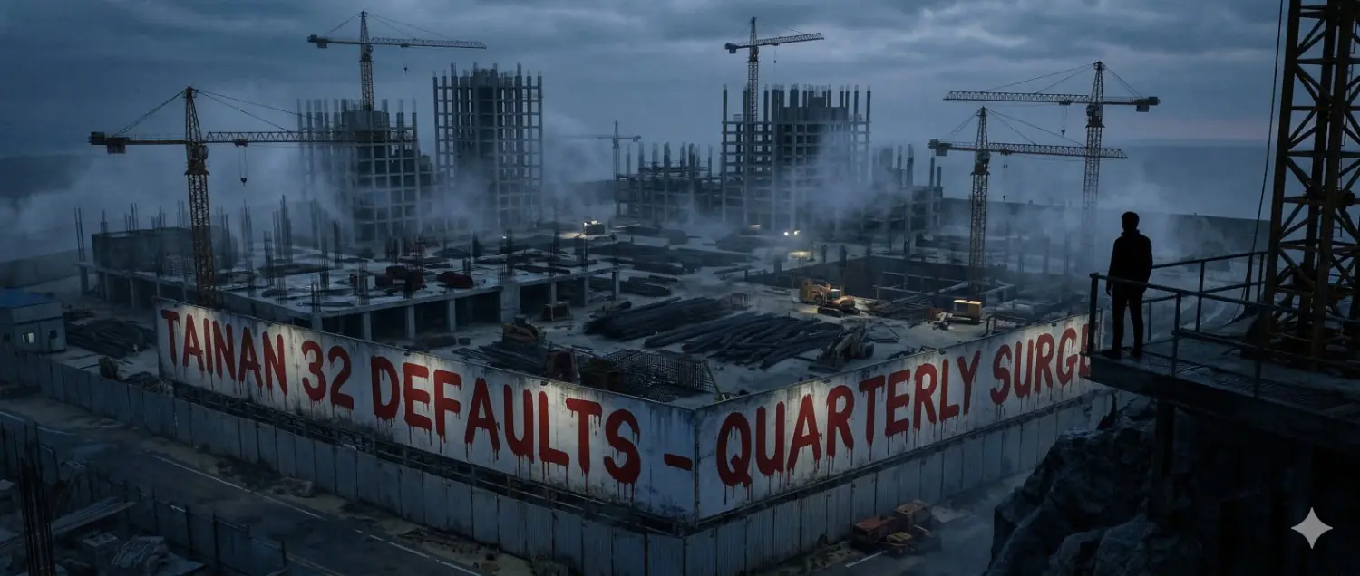 根據內政部不動產資訊平台公布數據,2025年第四季全台預售屋交易糾紛中,「建商倒閉」類型案件出現異常增加。其中台南市單季即發生32件,而2025年前三季全台同類型糾紛合計僅2件,顯示短期內增幅顯著,為房市進入盤整期後體質不良建商陸續浮現的具體訊號。