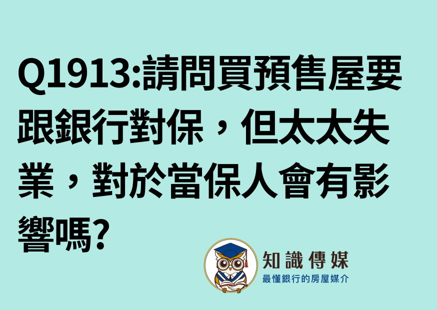 Q1913:請問買預售屋要跟銀行對保,但太太失業,對於當保人會有影響嗎?