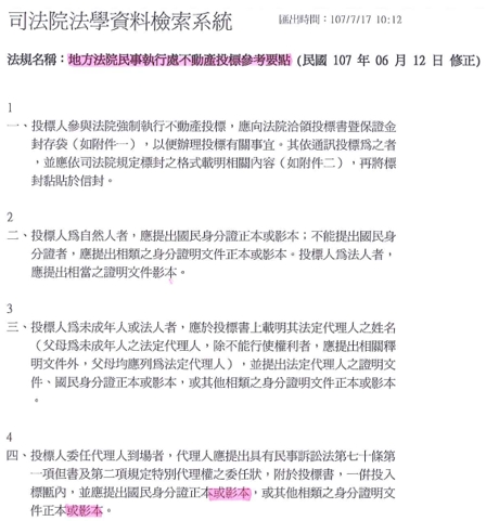 從這些規定及說明看下來,可以發現最根本的民事訴訟法及強制執行法並沒有規範到「委任人本人應備國民身分證正本或影本」這樣細節的事情。然後司法院在107年6月的時候制定了「地方法院民事執行處不動產投標參考要點」這個行政規則,那這個行政規則的法律位階到哪裡呢?它是否具有拘束各法院執行程序的效力呢?