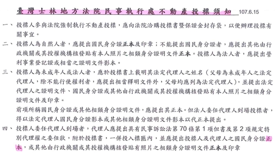 此次COCO代標法拍屋被判廢標的最關鍵理由即在於:COCO未於開標現場提供委託人本人之身分證正本。那究竟法律針對這點有沒有明確的規定呢?知識長特別整理了相關規定及說明供大家參考: