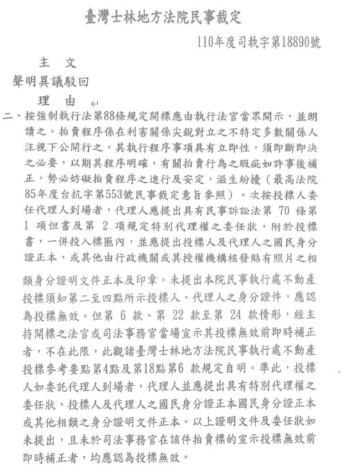 5月中旬群友COCO向「房屋貸款知識家」社群求助的法拍屋代標事件(延伸閱讀:前篇 https://www.loan-news.com.tw/highest-ranking-up/)日前二次聲明異議再度被士林地院裁定駁回,對此結果我們尊重司法專業人員的判斷,但仍深表遺憾。這邊知識長就與COCO共同協力抗爭的過程,跟大家作一個簡單的報告。
