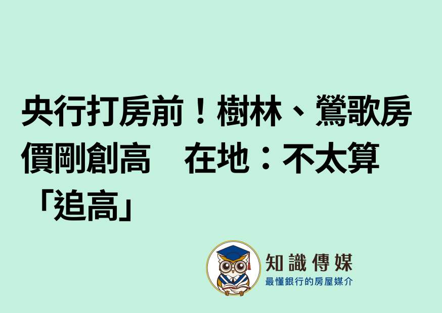 在央行出重手打房前,新北2蛋白區樹林、鶯歌新案剛創新高價,分別站上6、5字頭,不過,在地房仲表示,這2案條件佳,都有捷運建設利多,區域新案供給量也少,並對照周圍行情此成交價不太算「追高價」,不用太擔心套牢。