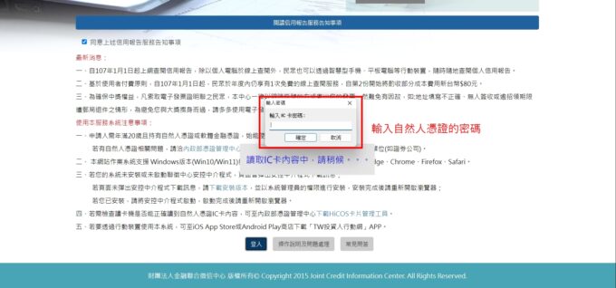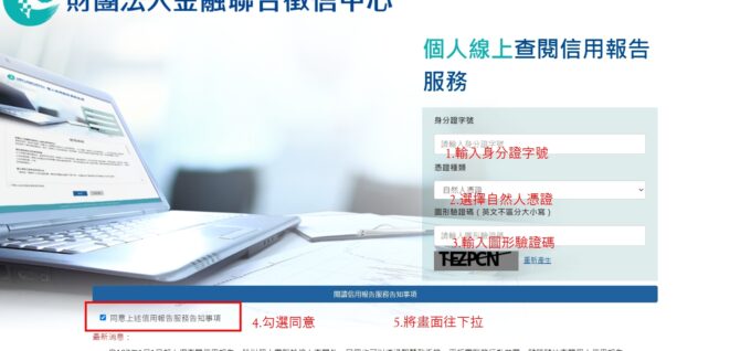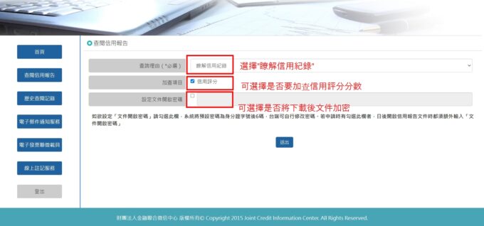 財團法人金融聯合徵信中心:https://apply.jcic.org.tw/CreditQueryInput.do