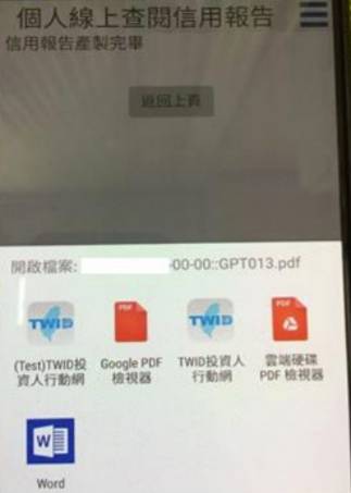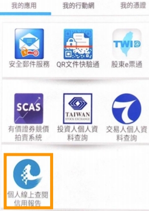 - 在「TW投資人行動網」App點選我的應用>個人線上查閱信用報告