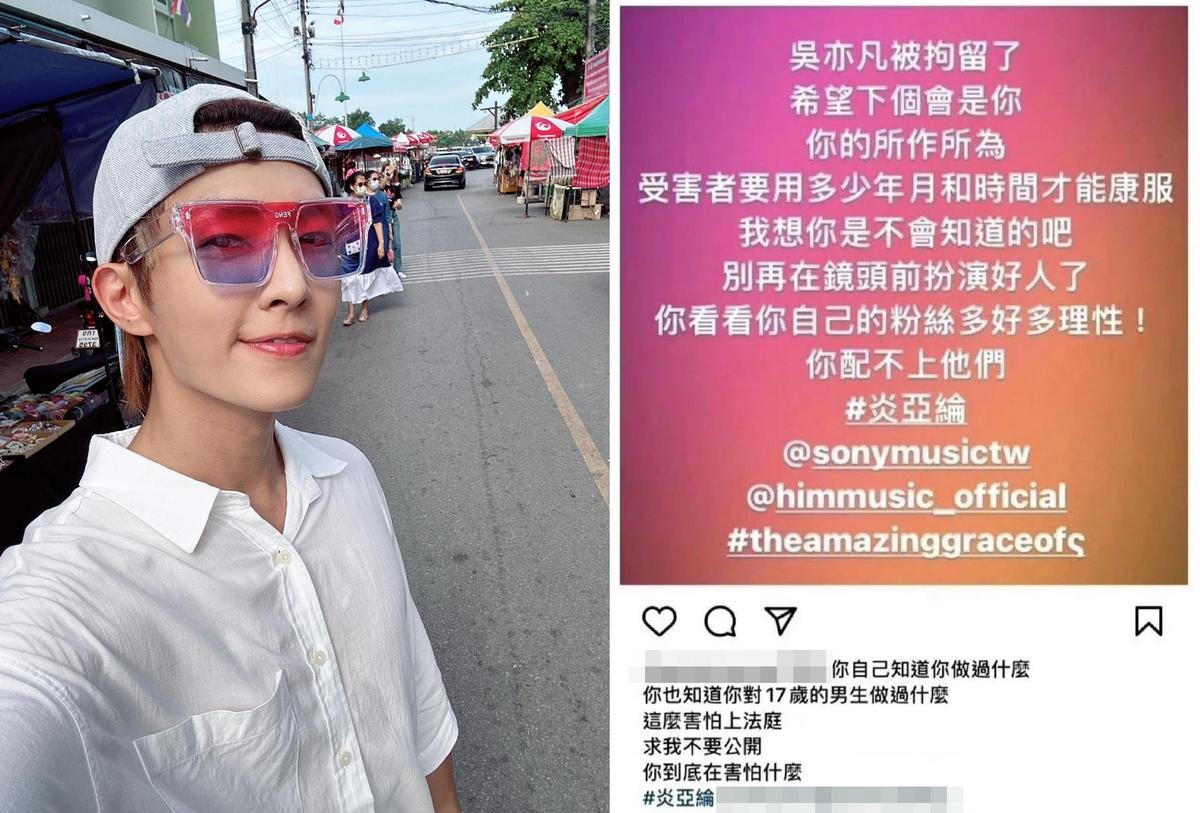 昨日(20)男星炎亞綸也遭到網紅「耀樂」控訴在其16歲的時候,「趁著我不注意,依然拿手機偷拍錄影」拍攝性愛影片,隨後性愛影片還被外流、傳播。