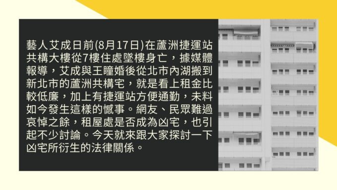 看時事談法律之<從艾成事件淺談凶宅-租屋篇>