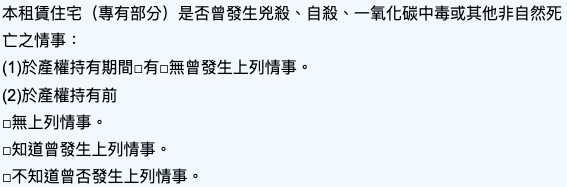 限於在所有人產權持有期間,曾發生兇殺或自殺死亡,不包括自然死亡及意外死亡。