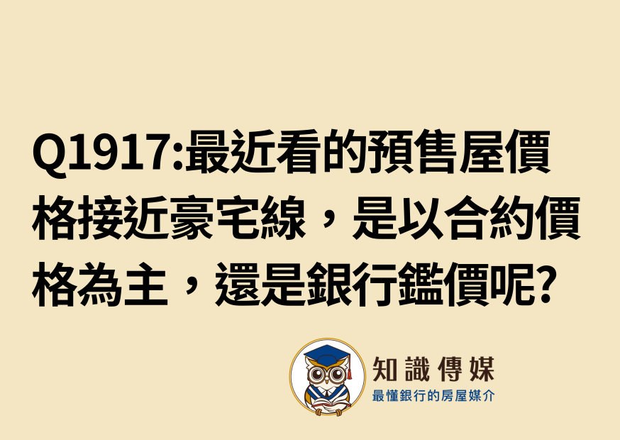 (1) 想請問各位前輩,如果最近在看的預售屋,價格接近豪宅線(<4000) 預計2026年中貸款 2027年初交屋的話,到時候貸款成數是8成還是3成,是以合約上的價格為主,還是貸款當時銀行鑑價為主呢?