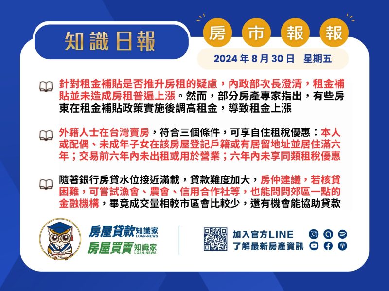 隨著新青安政策上路,房市在2024上半年火熱異常,但隨著銀行房貸瀕臨滿水位,紛紛祭出限貸令,不少民眾擔心貸款下不來,導致買房出現違約的情況。近日有名房仲給出建議,如果交屋已迫在眉睫,需要儘快核貸,漁會、農會、信用合作社都是可以嘗試貸款的機構,且郊區一點的金融機構成交量相較市區會比較少,還有機會能協助貸款,利率沒有太過份先貸在說,總比日復一日付違約金好。