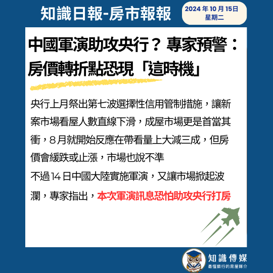 中國軍演助攻央行? 專家預警:房價轉折點恐現「這時機」