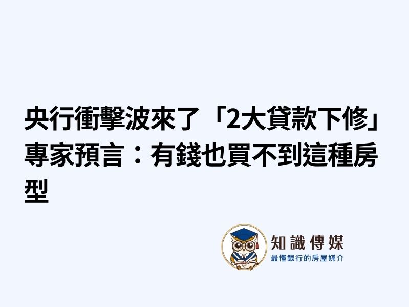 央行衝擊波來了「2大貸款下修」專家預言:有錢也買不到這種房型