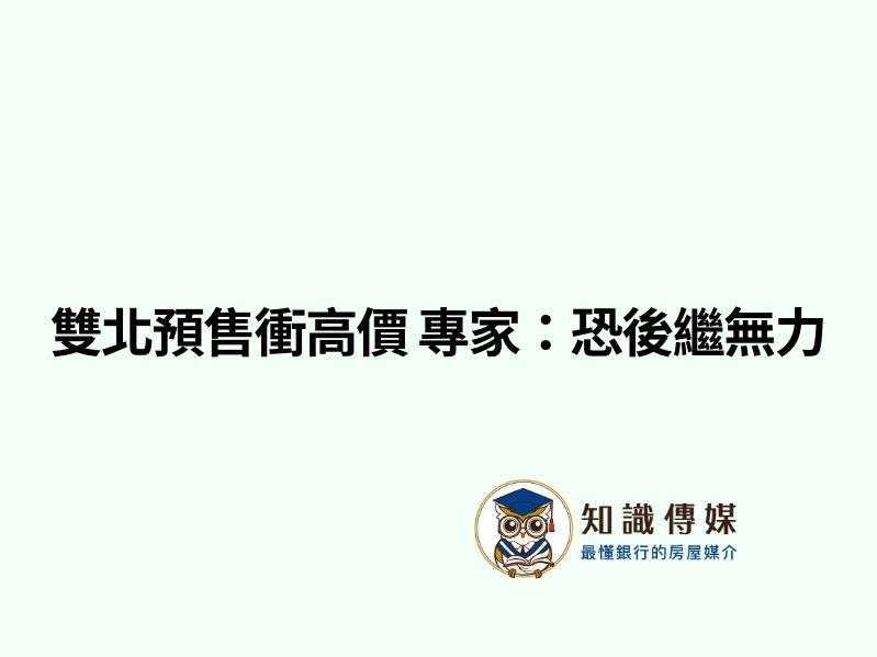 住展雜誌5日彙整實價登錄資訊顯示,雙北市房價空前噴出,今年前八月預售屋新成屋已有11筆新案,每坪單價攻頂,其中萬華已達129.3萬元、文山122.4萬元、板橋123萬元、永和107.8萬元,四區同步站上三位數。不過市場專家認為,房價受政策牽動,再衝高的動能恐後繼無力,未來難再創高。