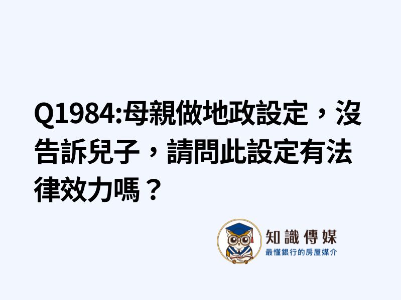 Q1984:母親做地政設定,沒告訴兒子,請問此設定有法律效力嗎?