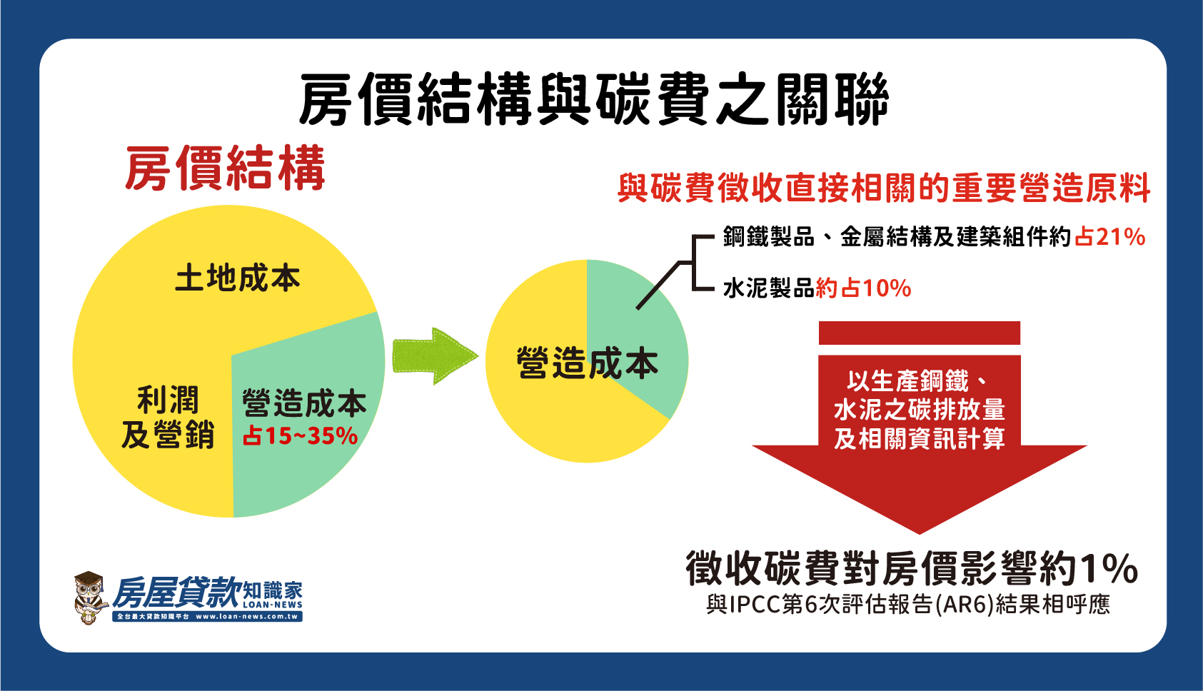 聯合國氣候變遷政府間專家委員會(IPCC)2023年發布的第六次評估報告(AR6)也指出,即使將原物料生產成本都轉嫁到房價上,對於房價的影響也少於1%,相關業者宣稱徵收碳費將導致房價上漲並非事實。