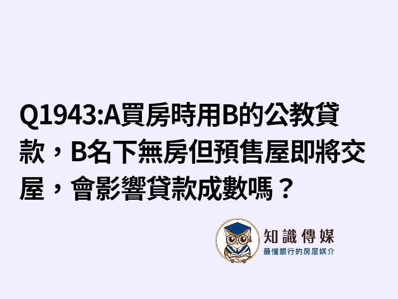 (1) A名下一間房,當初使用B的公教貸款,B名下無房,但(預售屋買B名字),即將要交屋,會影響貸款成數嗎?