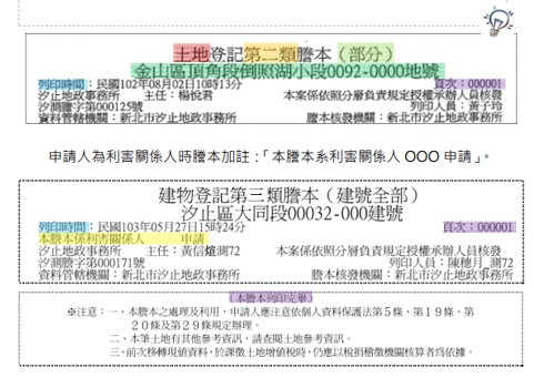 另外須注意的是,因為此兩項資料可能涉及其他自然人之個資,所以如果是申請第二類謄本,這兩項就會予以隱匿。