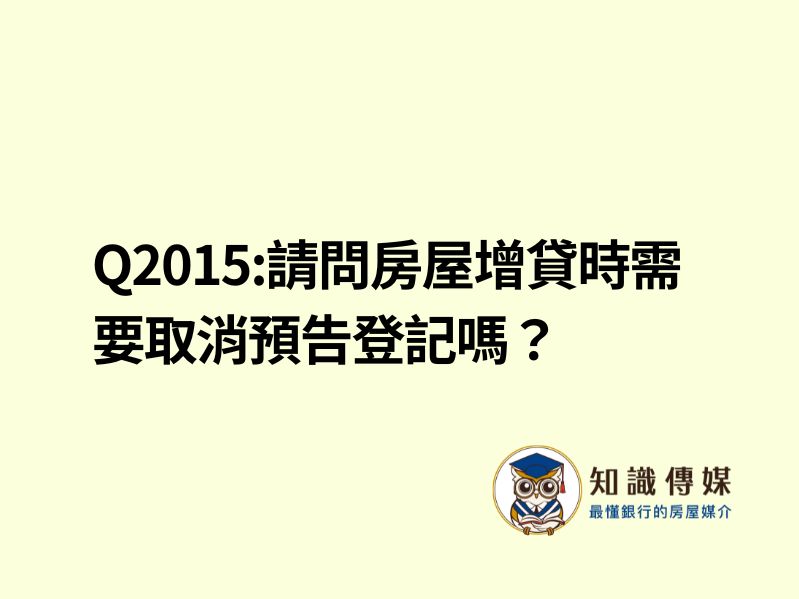 <span style="font-size: 14pt;">(1) 請問房屋增貸時需要取消預告登記嗎?</span> <span style="font-size: 14pt; color: #008080;">A: 是的,增貸時需取消預告登記。</span> <span style="font-size: 14pt;">(2) 增貸完成後,可以再申請預告登記嗎?</span> <span style="font-size: 14pt;"><span style="color: #008080;">A: 可以,增貸後可重新申請。</span></span> <span style="font-size: 14pt;"><a href="https://lin.ee/iSWCzoj" target="_blank" rel="noopener"><img class="aligncenter size-full wp-image-19971" src="https://loan-news.com.tw/storage/2023/08/3.jpg" sizes="(max-width: 1576px) 100vw, 1576px" srcset="https://loan-news.com.tw/storage/2023/08/3.jpg 1576w, https://loan-news.com.tw/storage/2023/08/3-300x53.jpg 300w, https://loan-news.com.tw/storage/2023/08/3-1024x183.jpg 1024w, https://loan-news.com.tw/storage/2023/08/3-150x27.jpg 150w, https://loan-news.com.tw/storage/2023/08/3-768x137.jpg 768w, https://loan-news.com.tw/storage/2023/08/3-1536x274.jpg 1536w, https://loan-news.com.tw/storage/2023/08/3-260x46.jpg 260w, https://loan-news.com.tw/storage/2023/08/3-750x134.jpg 750w, https://loan-news.com.tw/storage/2023/08/3-1140x203.jpg 1140w" alt="" width="1576" height="281" data-pin-no-hover="true" /></a>點我諮詢知識長 <img class="emoji" role="img" draggable="false" src="https://s.w.org/images/core/emoji/15.0.3/svg/1f600.svg" alt="😀" data-pin-no-hover="true" /> <a href="https://lin.ee/iSWCzoj" target="_blank" rel="noopener">https://lin.ee/iSWCzoj</a></span>