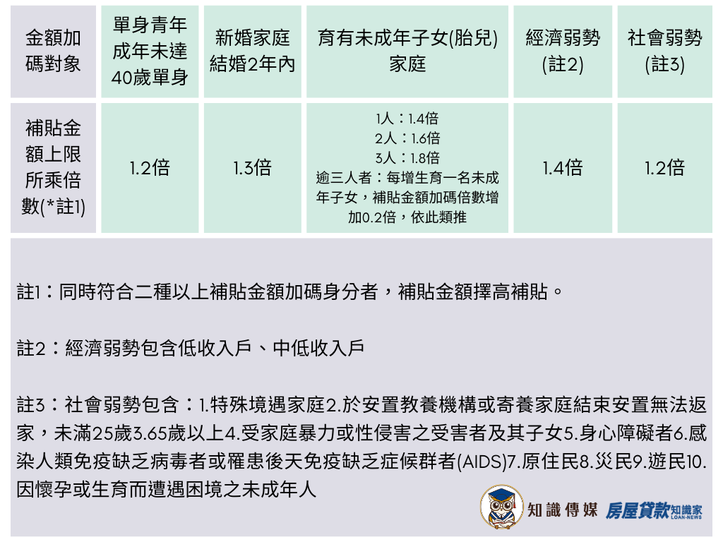 以下為申請租屋補助加碼的條件,若想申請加碼需符合以下身份,且不同的身份別,也有不同的加碼額度: