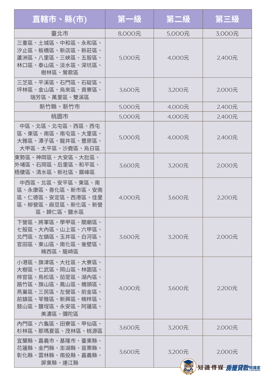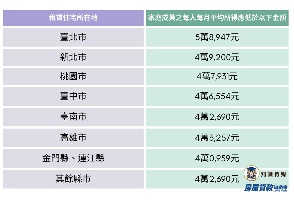 根據身分及租賃地分為三個等級,每級條件補助金額都不同,以下為表格和相關說明。