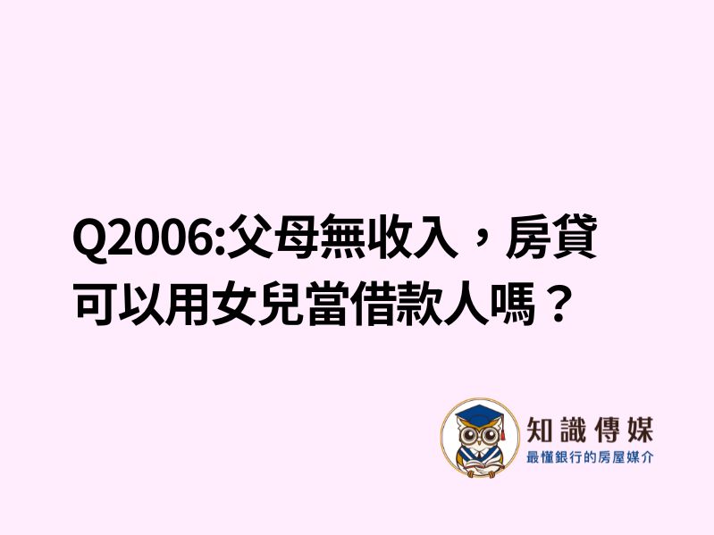 (1) 我和太太都已經退休,先前用太太的名字買了一間預售屋,年底交屋。但太太已無收入,在銀行不容易貸款,想請問貸款可以用女兒當借款人嗎?(房屋名稱仍為太太的名字)