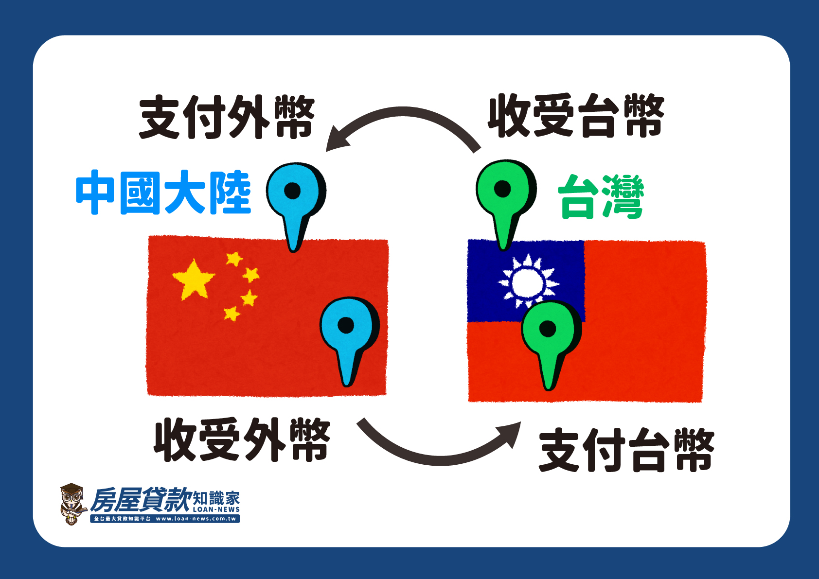 如果資金換匯沒有經過許可就稱為「地下匯兌」。根據銀行法規定,匯對業務是銀行特許產業,任何個人或公司行號都不得辦理匯兌。其實地下匯兌早在2000年兩岸開放貿易時就已經存在,當時台商受限於中國對於匯兌的嚴格管制,都紛紛將貿易資金轉向地下,部分銀樓也開始提供地下匯兌服務,以賺取匯差利潤。