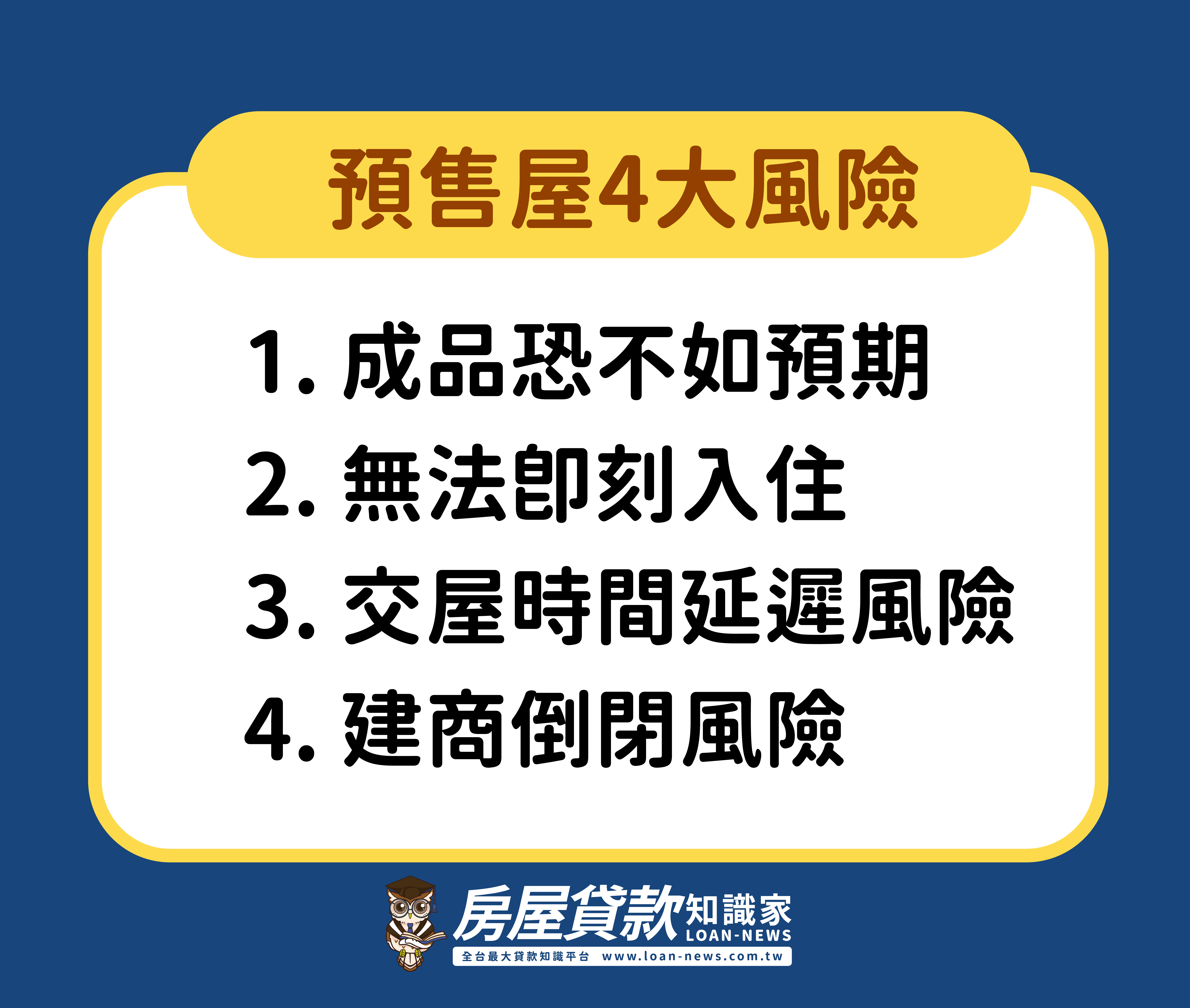 對於首次購屋的人來說,「預售屋」往往會是一個令人嚮往的購屋選擇,因為可貸成數較高,自備款壓力相對較低。雖然購買預售屋有許多優點,但我們也不能忽視風險,尤其是近年來出現的爛尾樓問題,因建商倒閉,導致了許多人陷入辛苦錢拿不回,又沒有房子住的窘境。