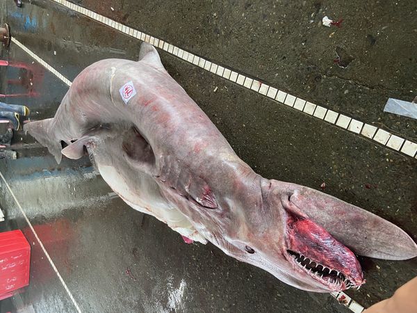 宜蘭南方澳漁港近日發現漁民使用底拖網,捕獲一隻稀有活化石「哥布林鯊」(學名Mitsukurina owstoni),重達800公斤且鯊魚體內還懷有6隻幼鯊,差點被餐廳收購作為食用。