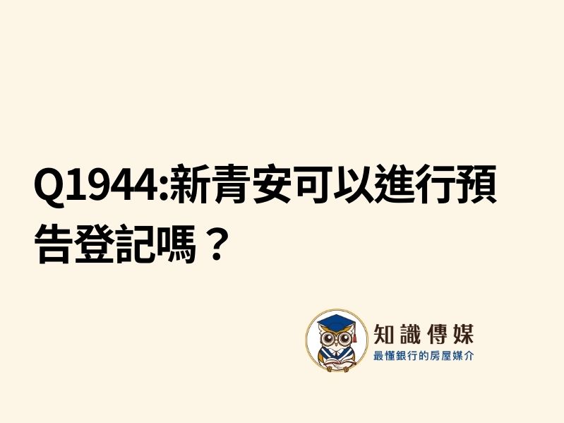 A:新青安可以預告登記,主要訴求是必須自住