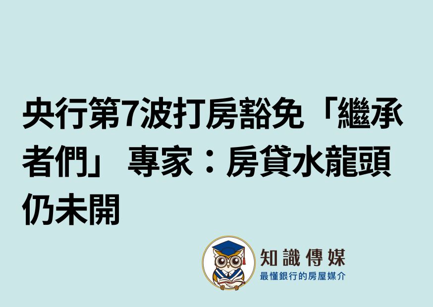 央行第7波打房豁免「繼承者們」 專家:房貸水龍頭仍未開