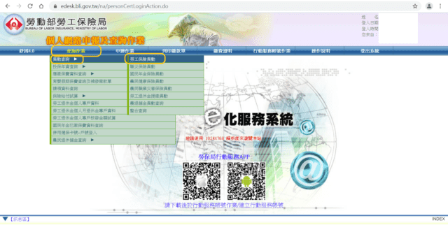 - 首先準備好讀卡機將憑證插入後,進入勞動部勞工保險局e化服務系統 → 連結 https://edesk.bli.gov.tw/na/