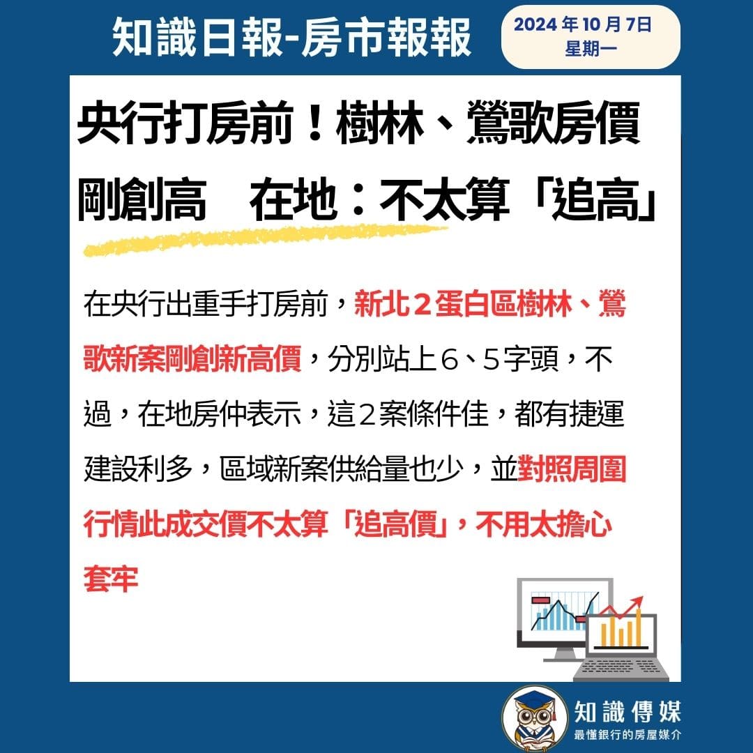 在央行出重手打房前,新北2蛋白區樹林、鶯歌新案剛創新高價,分別站上6、5字頭,不過,在地房仲表示,這2案條件佳,都有捷運建設利多,區域新案供給量也少,並對照周圍行情此成交價不太算「追高價」,不用太擔心套牢。