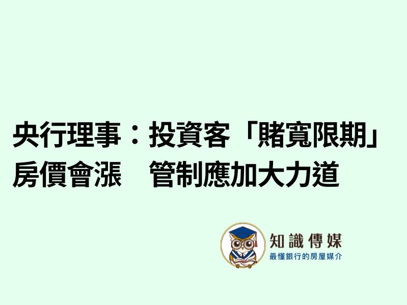 央行理事:投資客「賭寬限期」房價會漲 管制應加大力道