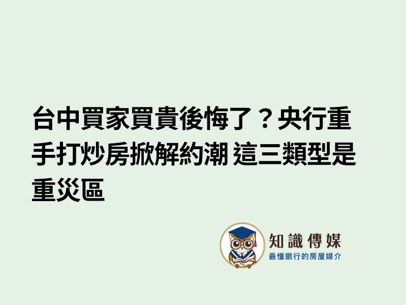 台中買家買貴後悔了?央行重手打炒房掀解約潮 這三類型是重災區