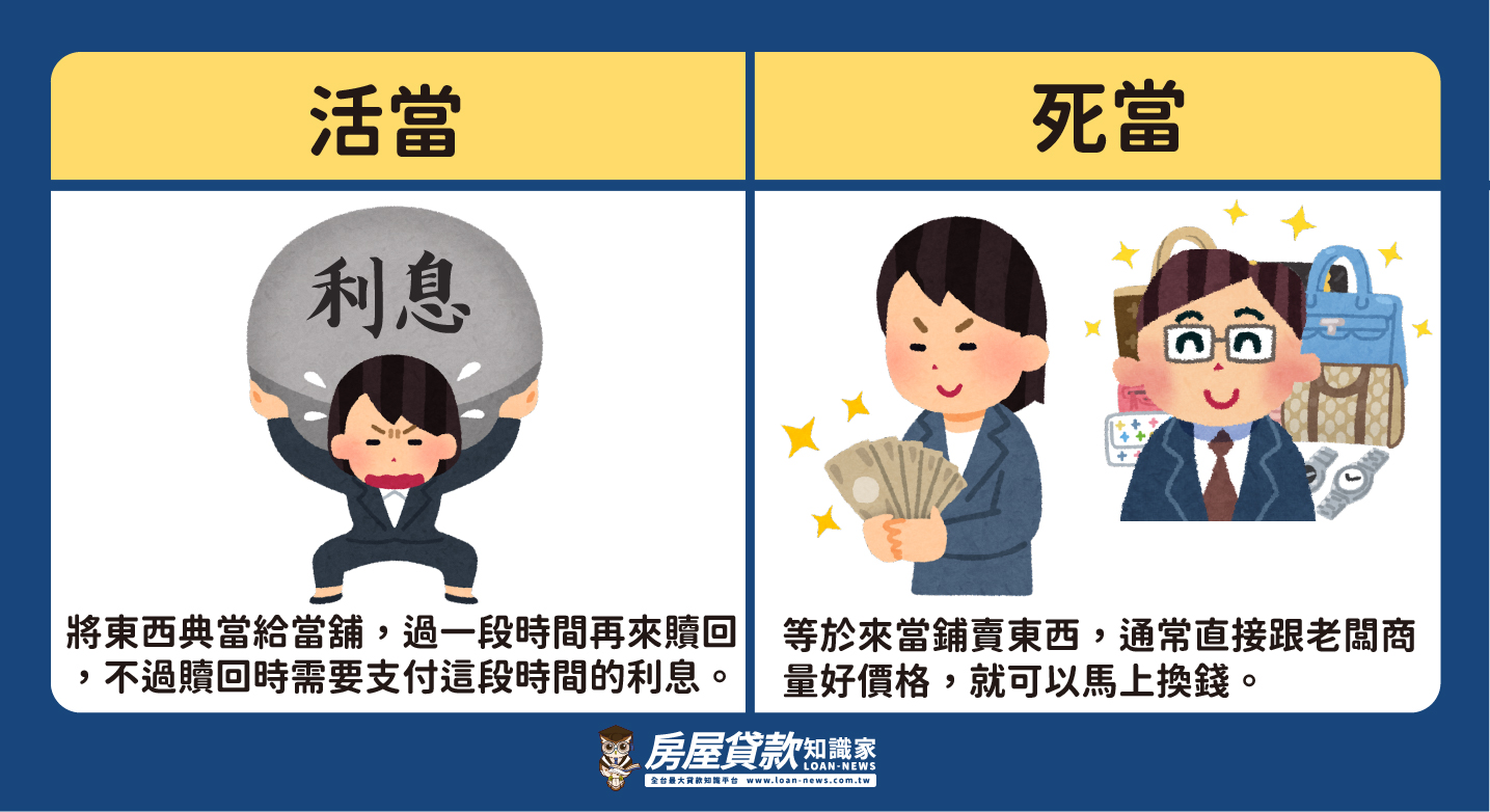 古代當舖為了確保典當物的合法性,當舖業者會要求當物人提供證明其所有權的文件或簽署相關文件,保護當舖業者和當物人的權益。在當東西的時,有分為活當和死當,活當就是將東西典當給當舖,過一段時間有錢了再來贖回,只不過需要支付這段時間的利息。而死當就是來當鋪賣東西,通常直接跟老闆商量好價格,就可以馬上換錢。
