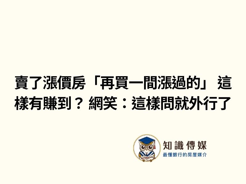 賣了漲價房「再買一間漲過的」 這樣有賺到? 網笑:這樣問就外行了