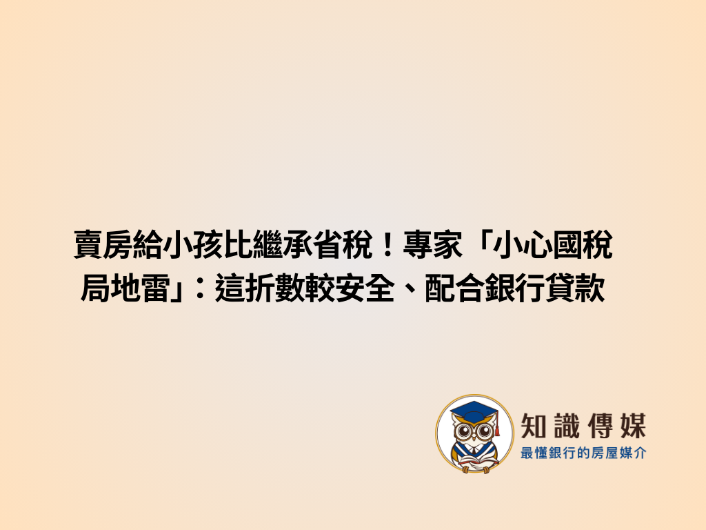 賣房給小孩比繼承省稅!專家「小心國稅局地雷」:這折數較安全、配合銀行貸款